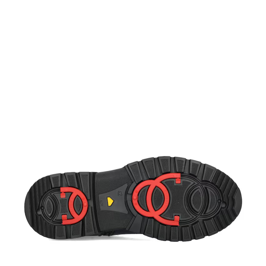 Mount Faden, Chelsea boots with ALPI OCsystem® Designed to provide optimal grip on icy and snowy surfaces. The durable upper is crafted from robust black leather, featuring a practical inside zipper for easy entry. The boots are lined with sheepskin and include a 4-layer insole for excellent heat insulation. Equipped with a grooved rubber outsole and retractable studs, these boots offer stability and traction. The rubber outsole includes practical fold-out studs from Italian ALPI are unfolded using a special key provided.