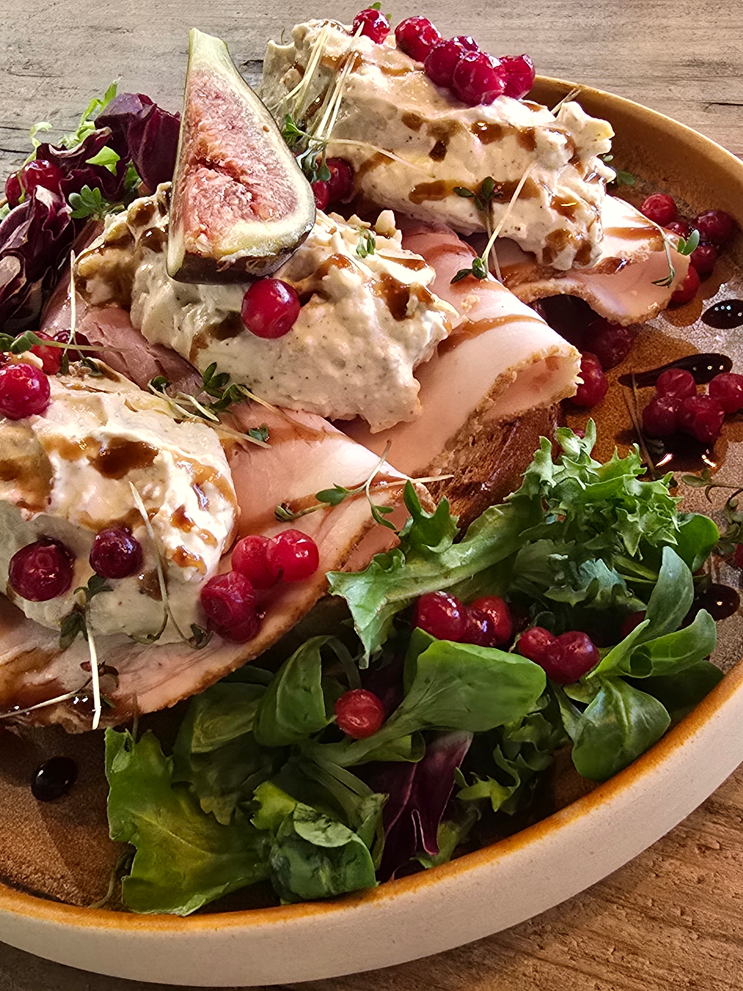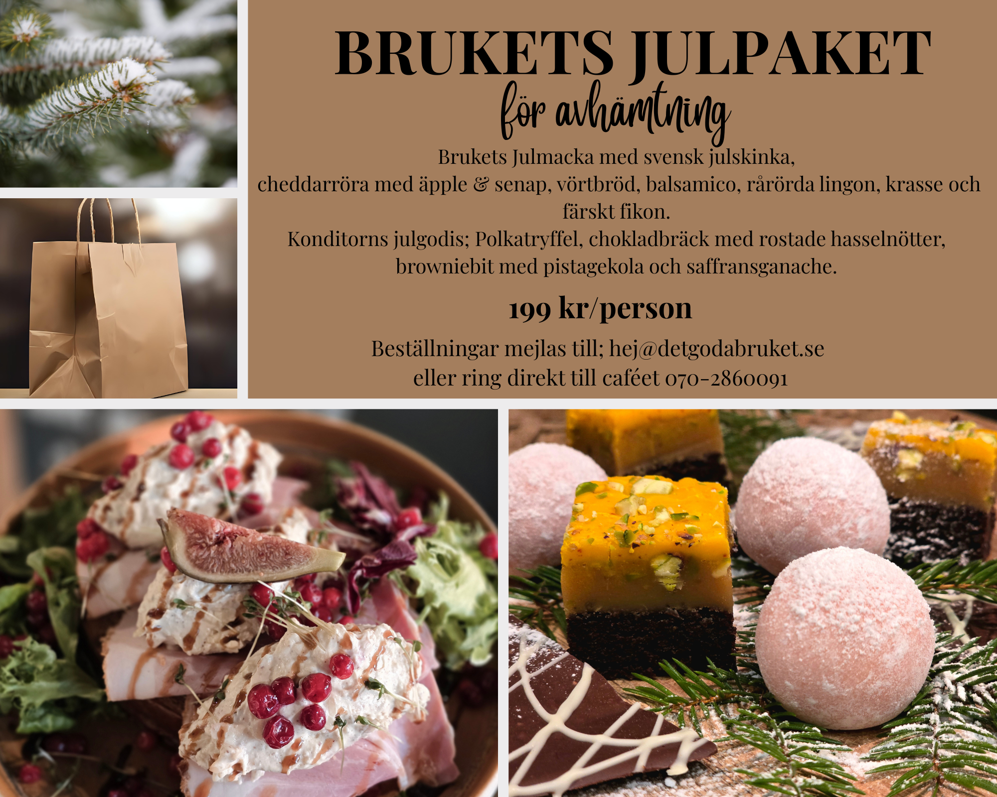 BRUKETS JULMACKA för åttonde året så serverar vi vår otroligt omtyckta julmacka! Med svensk julskinka och vår härliga röra med Cheddar, äpple och senap. Serveras på vörtbröd. Toppas med färskt fikon, lingon och balsamico 159,-