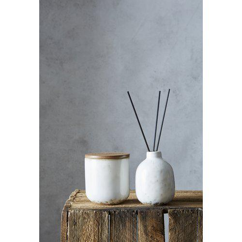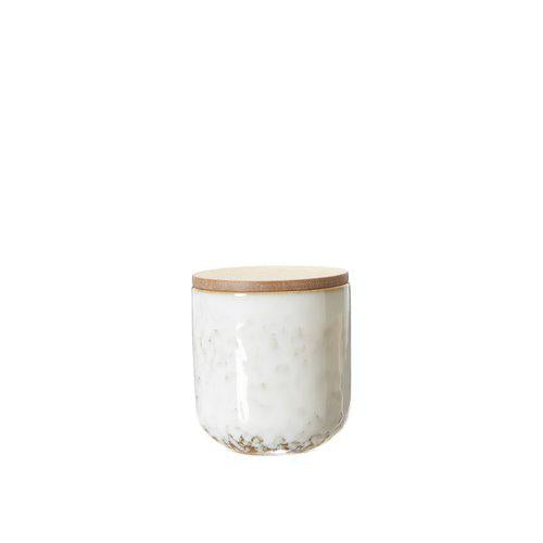 Doftljus i keramikkrus och trälock, med en elegant doft; midnight elegance.
